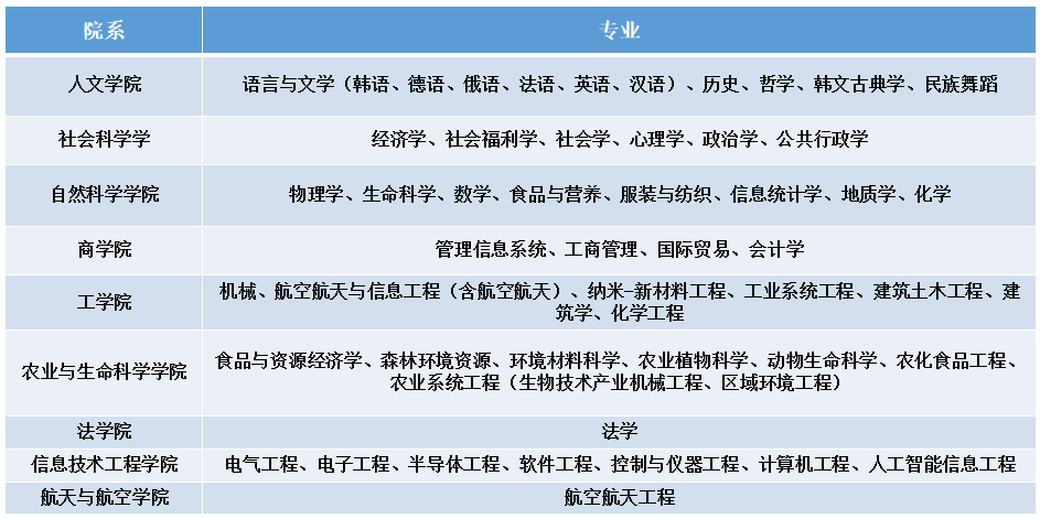 以下为交换生可选专业,授课语言有韩语,英语,中文三种。(详细课表可报名后向负责老师咨询)