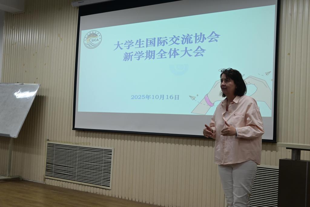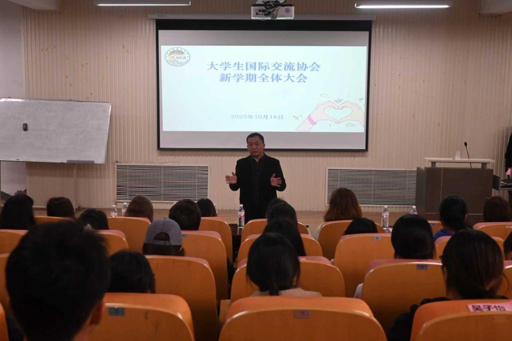 2025年10月16日,大学生国际交流协会(SICA)第一次全体大会在艺设一楼创业大讲堂顺利召开。国际交流中心主任兼国际学院分党委副书记郭建伟、国际交流中心科长张书杰、SICA指导老师严萌萌,以及Bina、Inga等八位外籍指导教师共同出席,与全体成员一同开启了协会新学期的篇章。