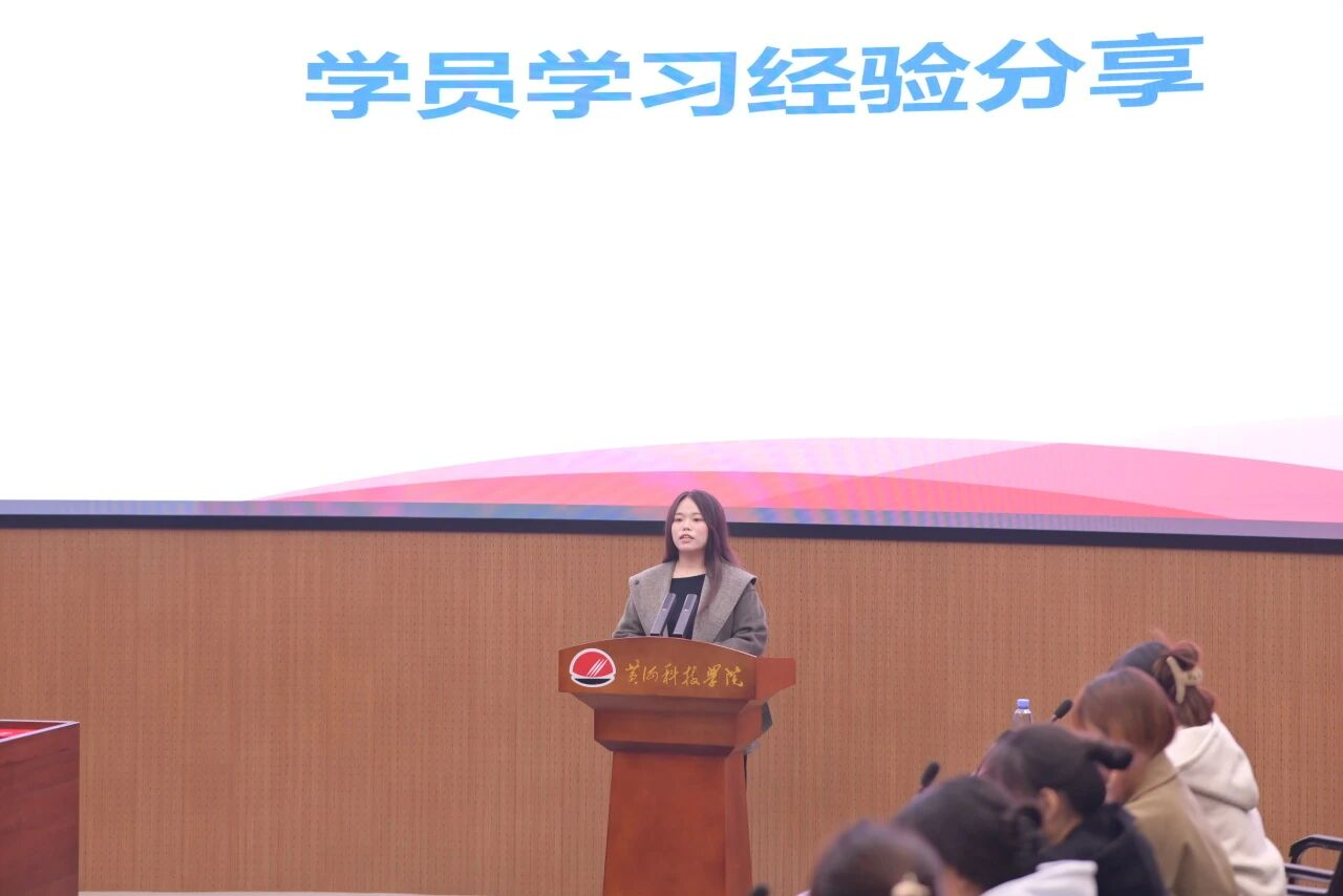 在学员分享环节,五位优秀代表结合自身经历畅谈成长感悟。工学部凌嘉同学以《仿生和仿生机器人设计》《逻辑与批判性思维》课程为例,分享了工程与自然融合的创新思维训练;商学部李如楠同学回顾了从国际交流中心助理到菁英班学员的跨越式成长,强调实践与理论的相辅相成;医学部王亚雯同学从医学影像专业出发,阐述了全球治理课程对其职业规划的颠覆性影响;艺体学部录香玲同学以电影艺术课程为例,探讨了影像表达与全球共识的深度联结;职业技术学院徐诺同学则聚焦可持续发展与学前教育,提出了“专业成长+全球视野”的双向赋能路径。