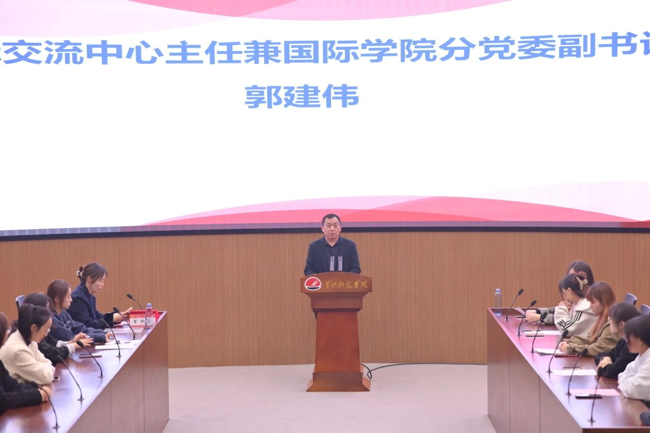 大会在庄严热烈的氛围中拉开帷幕。国际交流中心主任郭建伟首先致辞,他回顾了国际菁英班自获批"高层次国际化人才培养创新实践项目"基地校以来的丰硕成果:生源质量持续优化,共收到601份申请,录取50名学员;课程体系科学完善,构建了"全球治理课程+PBL交叉学科+国际胜任力实训"三位一体模式;学生发展成效显著,多名同学获赴韩交换、国际艺术节志愿者等实践机会。郭主任强调,学校将持续拓展国际交流平台,推动项目与专业融合,强化实习实践环节,并寄语学员"心怀天下,勇于担当",成为具有中国情怀与世界眼光的高层次国际化人才。